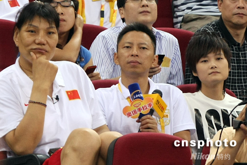 8月14日下午,北京奧運會男子籃球小組第四輪賽事在北京五棵松籃球館舉行,同為兩戰(zhàn)兩負(fù)的中國隊與安哥拉隊展開“生死大戰(zhàn)”。昔日中國女籃超級中鋒、身高2.04米的鄭海霞,超女李宇春等到場為中國隊助威。 中新社發(fā) 任晨鳴 攝