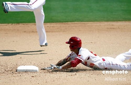 8月15日,北京奧運(yùn)會棒球男子預(yù)賽,中國隊(duì)與中華臺北隊(duì)的比賽在北京五棵松棒球場舉行,中國隊(duì)(白)最終在延長局以8:7戰(zhàn)勝中華臺北隊(duì)。中新社發(fā) 盛佳鵬 攝