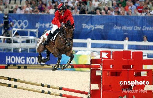 中國(guó)選手張濱駕坐騎“科爾蒂斯”上陣,飛躍障礙。 中新社發(fā) 洪少葵 攝
