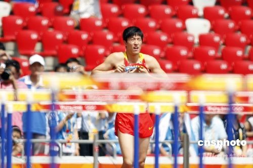 8月18日上午,在北京奧運男子110米欄第1輪第6組比賽中,中國選手劉翔因腿傷遺憾退出比賽。