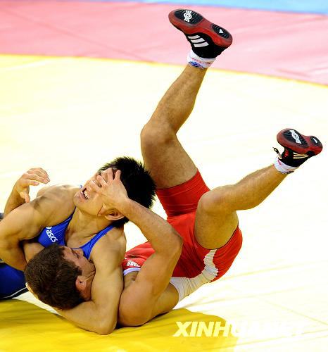 8月19日,在北京奧運會摔跤男子自由式55公斤級半決賽中,日本選手松永共廣(藍)戰(zhàn)勝俄羅斯選手別西克·庫杜霍夫,晉級決賽。新華社記者李鋼攝