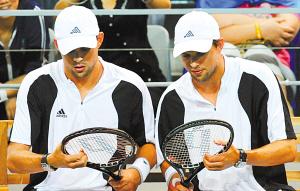 在16日結(jié)束的奧運(yùn)會網(wǎng)球男子雙打比賽中,布萊恩兄弟贏得銅牌。要從長相區(qū)分他們并不容易,但在球場上不難區(qū)分這兄弟倆,因?yàn)楦绺缡怯沂治张,弟弟是左手握拍?/p>