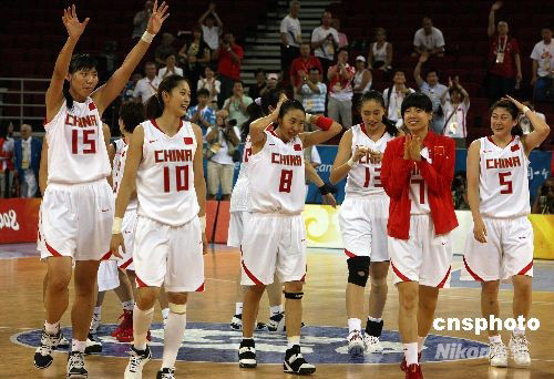 圖為中國(guó)女籃隊(duì)員賽后慶祝取得近年來的最好成績(jī)。