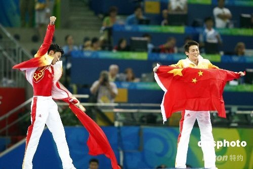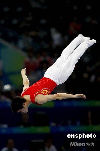 8月19日,中國選手陸春龍奪得北京奧運(yùn)會(huì)男子蹦床金牌。中新社發(fā) 盛佳鵬 攝
