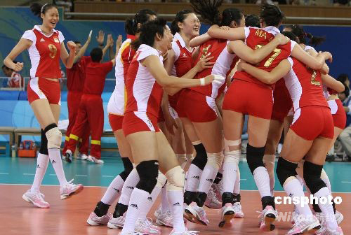 圖:中國女排晉級四強 隊員相擁慶祝
