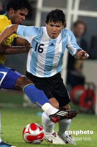8月19日晚,北京奧運會男足第二場半決賽在北京工人體育場舉行,阿根廷、巴西兩支強隊提前相遇,最終阿根廷隊以3比0完勝巴西隊,進(jìn)入決賽。 中新社發(fā) 任晨鳴 攝