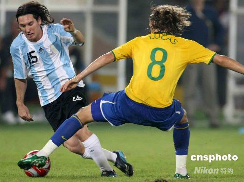 梅西(15號)領(lǐng)銜的阿根廷隊以3比0完勝巴西隊