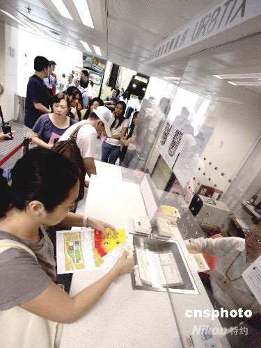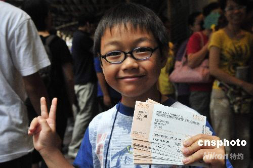 八月二十一日,中國(guó)奧運(yùn)金牌精英訪港表演門(mén)票開(kāi)始發(fā)售,香港市民通宵在售票點(diǎn)排隊(duì)購(gòu)票。入場(chǎng)票在今早十時(shí)開(kāi)始發(fā)售,圖為市民踴躍購(gòu)買(mǎi)。
