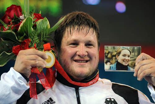 德國(guó)大力士馬蒂亞斯·施泰納用一枚沉甸甸的奧運(yùn)金牌來(lái)祭奠亡故的妻子。