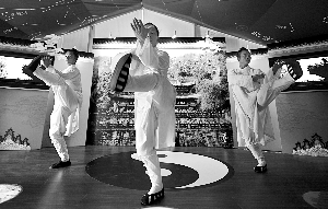7月26日,“中國故事”湖北小屋內(nèi),正在進(jìn)行武當(dāng)功夫表演。陳杰 攝
