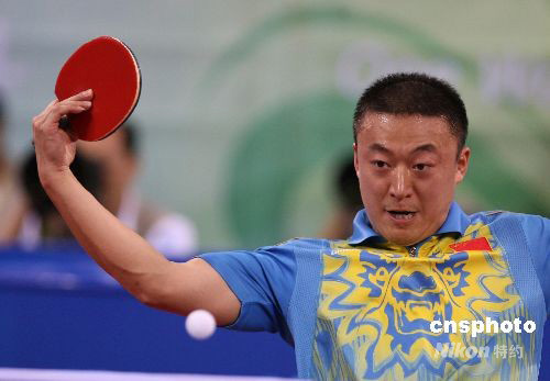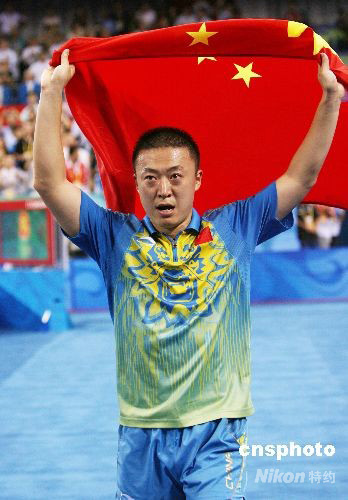 8月23日晚,馬琳在北京奧運(yùn)會乒乓球男子單打決賽中以4:1戰(zhàn)勝隊友王皓,奪得冠軍。為中國奧運(yùn)軍團(tuán)贏得第49枚金牌。至此,中國選手包攬北京奧運(yùn)會乒乓球男子單打前三名。此前,另一名中國乒乓球名將王勵勤在季軍爭奪戰(zhàn)中擊敗42歲的瑞典老將佩爾森,獲得銅牌。 中新社發(fā) 武仲林 攝
