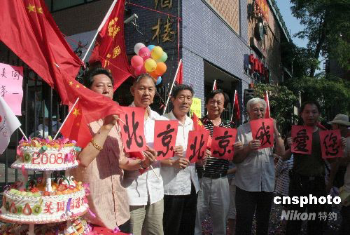 圖為紐約福建公所的幾位華僑,打出“北京北京我愛(ài)您”標(biāo)語(yǔ),驕傲之情溢于言表。