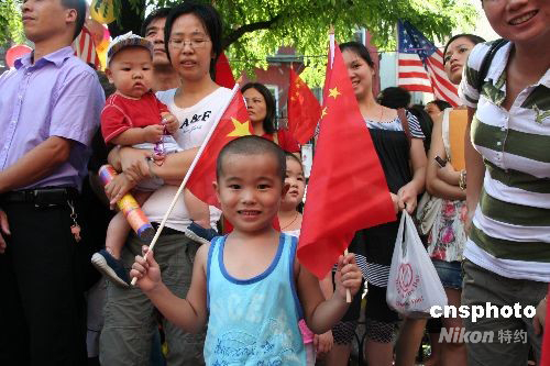美國東部時間8月24日,紐約華人華僑舉行盛大集會,共同慶祝北京奧運(yùn)會圓滿成功。許多年紀(jì)尚幼的孩子,也手舞國旗走上街頭,歡慶的人流令紐約華埠如節(jié)日般熱鬧。