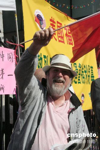 許多紐約當(dāng)?shù)厥忻褚彩治柚袊鴩,共同加入慶祝人潮。中新社發(fā) 魏晞 攝