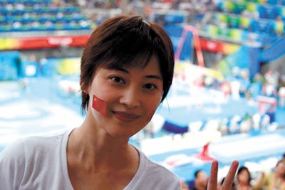 在北大體育館觀看中國女子乒乓團(tuán)體決賽的袁立,見證了中國奪取奧運會歷史上首枚乒乓團(tuán)體金牌,不忘擺個POSE表示一下喜悅心情。