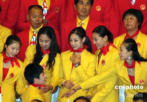 8月26日,2008年北京奧運會中國體育代表團(tuán)總結(jié)大會在北京人民大會堂金色大廳舉行。中國藝術(shù)體操隊員參加北京奧運會中國體育代表團(tuán)總結(jié)大會。 中新社發(fā) 廖文靜 攝