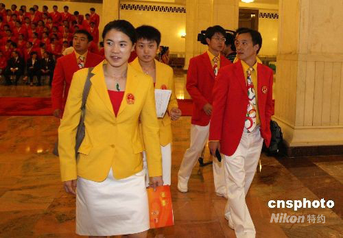 8月26日,2008年北京奧運(yùn)會(huì)中國體育代表團(tuán)總結(jié)大會(huì)在北京人民大會(huì)堂金色大廳舉行。王楠、郭躍參加北京奧運(yùn)會(huì)中國體育代表團(tuán)總結(jié)大會(huì)。中新社發(fā) 廖文靜 攝