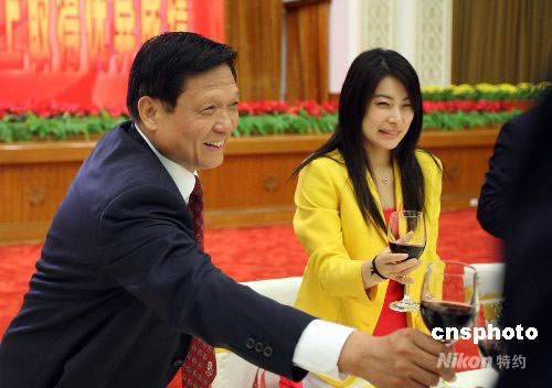8月26日,2008年北京奧運會中國體育代表團總結大會在北京人民大會堂舉行。中共中央政治局委員、北京市委書記、北京奧組委主席劉淇向北京奧運會中國體育代表團敬酒致意。