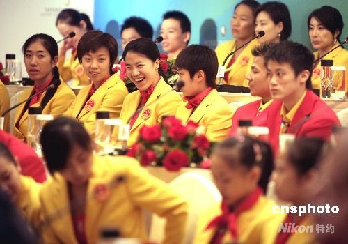 圖為張怡寧、王楠、郭躍在發(fā)布會(huì)現(xiàn)場(chǎng)。中新社發(fā) 張勤 攝