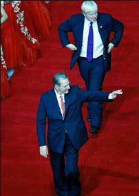 中新網(wǎng)8月31日電 倫敦市長約翰遜為自己在出席北京奧運(yùn)會閉幕式上的隨意態(tài)度作出辯護(hù)。由于2012年奧運(yùn)會將在倫敦舉辦,作為倫敦市長的約翰遜因此在北京奧運(yùn)會閉幕式上從北京市長郭金龍手中接過了奧林匹克會旗。