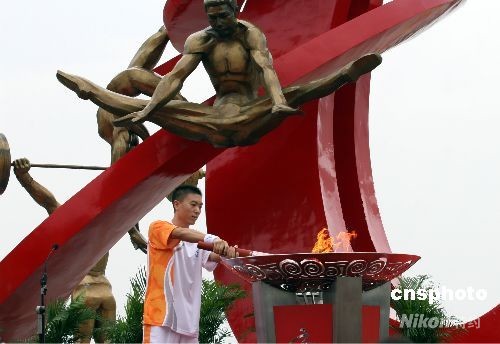 8月31日,最后一棒火炬手譚躍華在湘籍奧運(yùn)明星廣場(chǎng)點(diǎn)燃圣火盆,標(biāo)志著殘奧火炬接力長(zhǎng)沙站的傳遞活動(dòng)圓滿結(jié)束。殘奧會(huì)“中華文明”線火炬?zhèn)鬟f第三站當(dāng)日在湖南長(zhǎng)沙舉行,包括13名殘疾人火炬手在內(nèi)的70名火炬手將“超越、融合、共享”的殘奧會(huì)理念在星城手手相傳。中新社發(fā) 鄧霞 攝