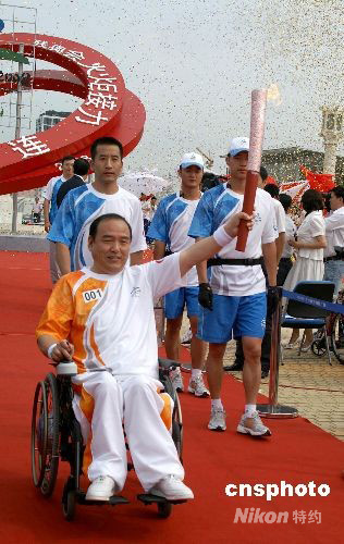 9月3日上午9時30分,以“超越、融合、共享”為主題和“點燃激情,奉獻關(guān)愛”為口號的北京殘奧會火炬,開始在中國北方美麗的海濱城市大連傳遞。大連市是北京殘奧會火炬“時代風采”路線傳遞的第五站,也是本條路線的最后一站。 中新社發(fā) 宋太盛 攝