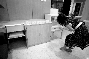 昨日,記者來到中鴻信公司,即將拍賣的奧運會媒體村的記者們使用過的寫字臺、單人床、電水壺都擺出來展示,F(xiàn)場一些市民表示,對此批奧運物資略感失望!拔蚁胭I些有奧運痕跡的物品回去留作紀(jì)念,比如開幕式上的缶這類物品,但這批奧運物資一點沒有奧運痕跡!币晃粊砼馁u公司“看貨”的女士表示,自己這次只能失望而歸。