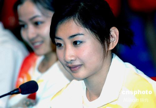 9月4日,剛剛載譽歸來的福建籍北京奧運會舉重“金牌教練”陳文斌、北京奧運會特設(shè)武術(shù)項目 “金牌教練”魏丹彤、北京奧運會舉重冠軍張湘祥、蹦床冠軍何雯娜、北京奧運會特設(shè)武術(shù)項目南拳冠軍林凡走進福州大學(xué)與近二百名師生舉行座談互動。圖為被譽為中國最美奧運冠軍的何雯娜與大學(xué)生們親切交流。