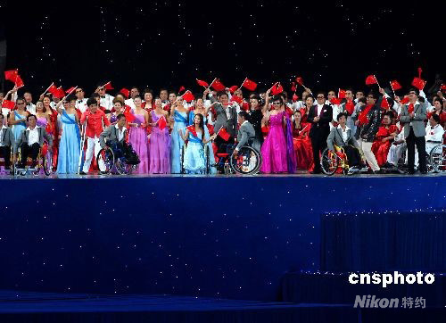 圖:北京殘奧會開幕式前殘疾藝人登臺表演