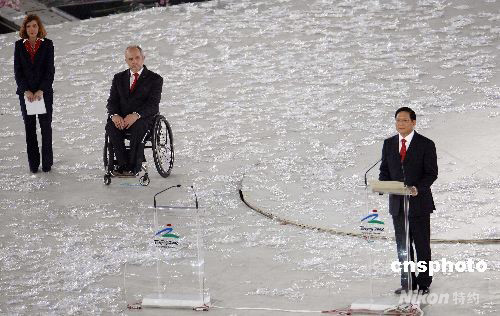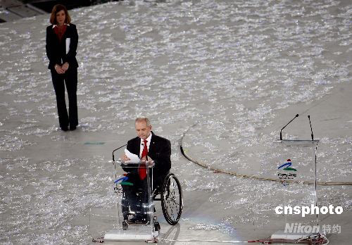 圖為克雷文在場(chǎng)地中心講臺(tái)致辭。中新社發(fā) 盛佳鵬 攝
