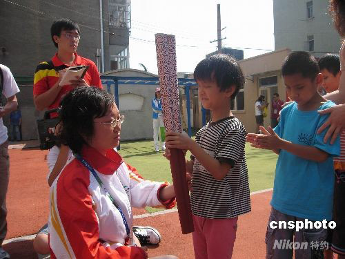 雖然眼睛看不見(jiàn),但阻擋不了自己對(duì)奧運(yùn)的渴望。九月十二日,殘奧會(huì)火炬來(lái)到了青島市盲人高級(jí)中學(xué),進(jìn)行了一場(chǎng)特殊的火炬?zhèn)鬟f,全校一百九十多個(gè)孩子一一親手撫摸火炬,感受奧運(yùn)魅力。圖為盲童在撫摸火炬。中新社發(fā) 修建華 攝