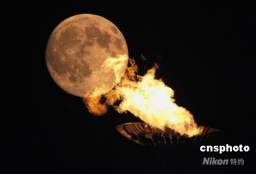 圖:中秋滿月映圣火