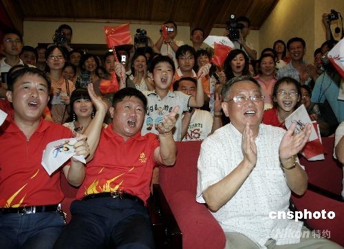 圖:香港市民觀看北京奧運(yùn)閉幕式