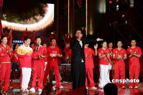 圖:張學(xué)友與奧運(yùn)冠軍一同獻(xiàn)歌