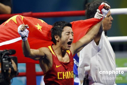 圖:鄒市明奪中國第一枚奧運(yùn)會(huì)拳擊金牌