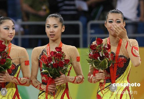 圖:藝術(shù)體操隊(duì)創(chuàng)造歷史 隊(duì)員喜極而泣