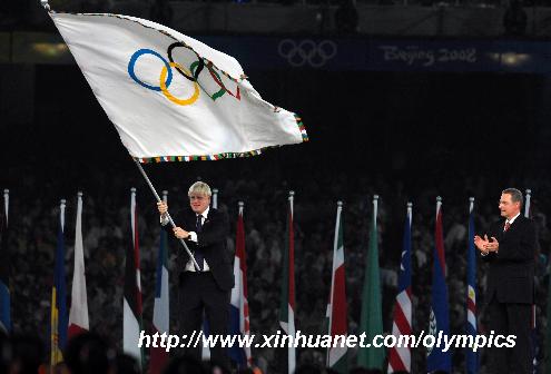 圖:奧運(yùn)會(huì)閉幕奧林匹克會(huì)旗降下鳥巢