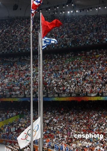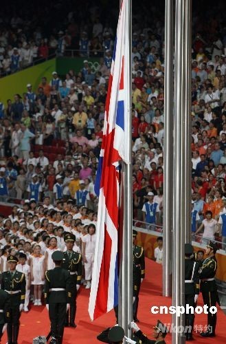 圖:北京奧運(yùn)會(huì)閉幕式上升英國國旗