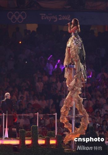 圖:奧運(yùn)閉幕式上多明戈宋祖英合唱《愛的火焰》