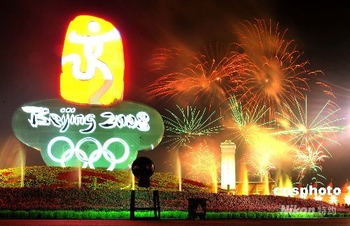 圖:天安門廣場燃放煙花慶祝奧運(yùn)會(huì)閉幕