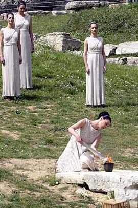 當(dāng)?shù)貢r間2008年3月24日上午11時48分,北京奧運(yùn)圣火在古奧林匹克遺址點(diǎn)燃。在圣火采集儀式開始前,慕名而來的人們已經(jīng)率先收獲兩個驚喜:一是被預(yù)報可能出現(xiàn)陰雨天氣的奧林匹亞,整個上午都是艷陽高照;二是希臘總統(tǒng)帕普利亞斯親臨現(xiàn)場,而在此之前,希臘總統(tǒng)只在二00四年出席過在本國舉行的雅典奧運(yùn)會圣火采集儀式。 。[點(diǎn)擊進(jìn)入專題]