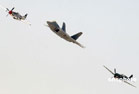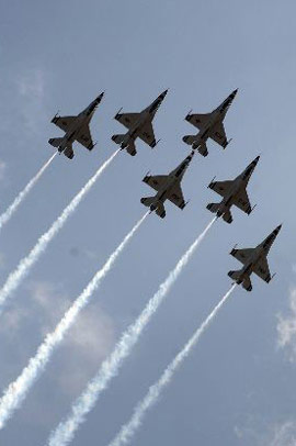 當(dāng)?shù)貢r(shí)間5月4日,位于美國南加州河濱縣的一個(gè)美國空軍預(yù)備基地舉行規(guī)模盛大的航空展和飛行表演。C-17A全球霸王運(yùn)輸機(jī)、C-5銀河運(yùn)輸機(jī)等空中巨無霸和F-22猛禽戰(zhàn)機(jī)等美軍先進(jìn)軍用飛機(jī)亮相展覽,F(xiàn)-22戰(zhàn)機(jī)飛行表演、美國空軍“雷鳥”飛行隊(duì)的特技表演等令近十萬民眾大飽眼福。