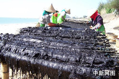 近日,記者走進(jìn)粵東南澳縣云澳鎮(zhèn)最大的紫菜養(yǎng)殖場(chǎng)云祥紫菜養(yǎng)殖加工場(chǎng),場(chǎng)長(zhǎng)王龍加告訴記者:“今年水溫適宜,水質(zhì)良好,養(yǎng)殖的兩百多畝紫菜比去年提前一個(gè)星期左右收成。紫菜除供應(yīng)國(guó)內(nèi)的廣州、深圳等珠三角地區(qū)外,還遠(yuǎn)銷東南亞,供不應(yīng)求!