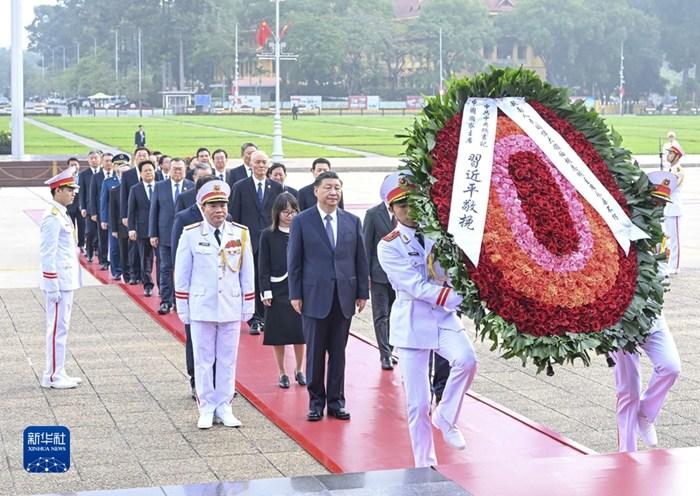 習(xí)近平瞻仰胡志明陵并敬獻(xiàn)花圈