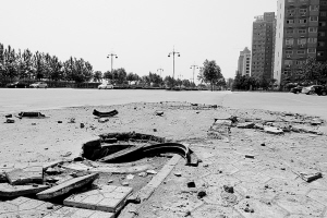 昨日10時許,記者在龍卡公園東南角看到,這些窨井有三四米深,標(biāo)有“高壓危險”字樣的窨井蓋,有的被炸得四分五裂;有的井圈被炸斷,井蓋飛出去四五米遠(yuǎn);離爆炸中心十米遠(yuǎn)的地方散落了很多水泥碎塊,公園便道上停放的自行車上也落滿灰塵,便道磚也損毀嚴(yán)重。