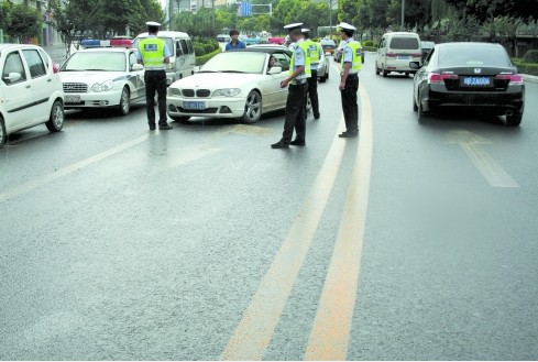 昨日上午9時(shí)許,綿陽交警直屬三大隊(duì)民警范強(qiáng)正在治平路附近執(zhí)勤,而從芙蓉漢城到東津路都在進(jìn)行交通管制,所有車輛按照規(guī)定正在等待放行。突然,一輛車牌號(hào)為川BAG789的白色寶馬跑車駛進(jìn)了交通管制區(qū),并一路飛奔。范強(qiáng)見狀,立即打手勢(shì)示意司機(jī)停車檢查。見此情形,司機(jī)不但沒有停車,反而加速向芙蓉橋駛?cè)ァ?/p>