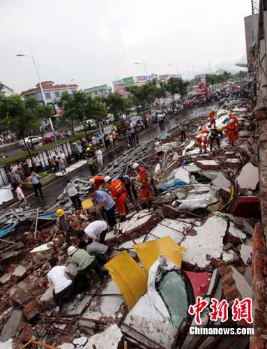 今天下午4點(diǎn)45分,記者趕到現(xiàn)場(chǎng)。發(fā)生事故是巨桑國(guó)際家居博覽中心一幢兩層高的樓房,樓房頂部還架有大型廣告牌,此時(shí)該樓房已有約50米長(zhǎng)的外墻倒塌,現(xiàn)場(chǎng)已經(jīng)設(shè)置起警戒,公安、消防、醫(yī)院等部門(mén)的救援人員及巨桑工作人員等近百人正在倒塌現(xiàn)場(chǎng)全力展開(kāi)搜救工作,衢州市及柯城區(qū)有關(guān)領(lǐng)導(dǎo)也已趕到現(xiàn)場(chǎng)。