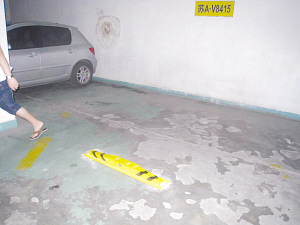 記者隨即來到大廈負(fù)二樓的停車場(chǎng),一睹機(jī)械車位的芳容。“好家伙,不大的停車場(chǎng)里還真的停放了不少車輛。”原來,為了將停車位數(shù)量發(fā)揮到最大極限,這里的停車場(chǎng)充分利用了樓層的空間,借助機(jī)械設(shè)備將停車場(chǎng)分為上下兩層,使停車數(shù)量翻了一倍。那么市民爆料的人防工程停車位在那里呢?記者注意到,在機(jī)械車位的對(duì)面地面上還停著不少輛汽車,奇怪的是,每個(gè)停車位下面都安裝了地鎖,似乎是防止別的車輛亂停亂放。 就在記者感到納悶的時(shí)候,記者抬頭突然發(fā)現(xiàn),在機(jī)械車位對(duì)面的墻體上有些人防工程的標(biāo)識(shí)。