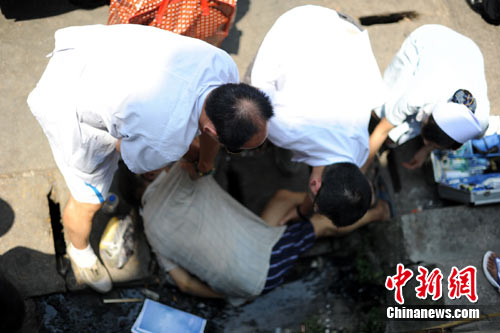 中新網(wǎng)重慶7月30日電(連肖 劉函冉)30日下午14時許,記者路過重慶陳家坪汽車站時看到,一六旬老人倒在車站出站口外的排水溝里!120”急救人員稱,該老人極有可能是因下空調(diào)車后,無法適應室外40多度的高溫,突發(fā)心腦血管疾病猝死。