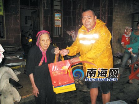 今日上午8時30分,共青團三亞市團委青年志愿者、海南省紅十字救援大隊三亞分隊,冒著雷雨天氣到保亭黎族苗族自治縣看望了這幾位健在的慰安婦。由于保亭黎族苗族自治縣地屬山區(qū),鄉(xiāng)村道路復雜,幾位受害者居住較為分散,為了今天能夠安全順利的做好這次慰問活動,志愿者和紅十字會人員馬不停蹄,他們首先趕到南茂農(nóng)場五區(qū)北賴隊看望陳金玉阿婆,隨后看望陳連村阿婆。中午12時30分驅(qū)車去響水鎮(zhèn)什齊苗村,但路上被山洪攔阻,只好把車停在路上,徒步趕到數(shù)里之外的鄧玉民阿婆家。